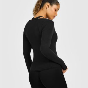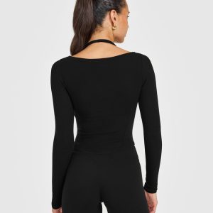 Mellow™ Rib V Neck Long Sleeve Top Black