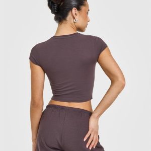 Cotton Baby T-Shirt with Printed Logo Umber Brown