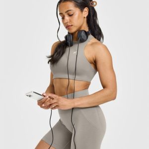 | High neck sports bra with high front coverage | |