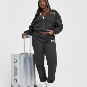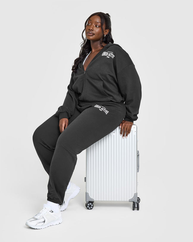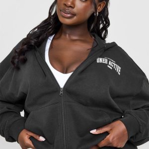 Lightweight Zip Through Hoodie With Athletic Graphic Soft Black