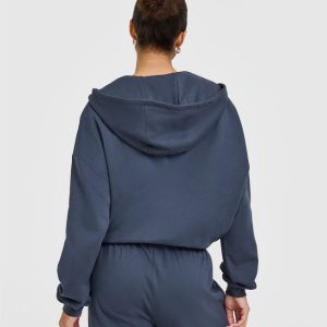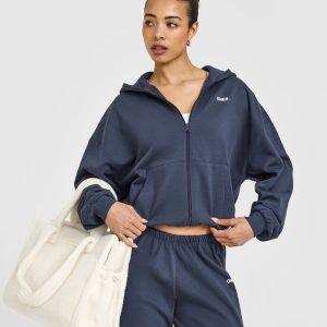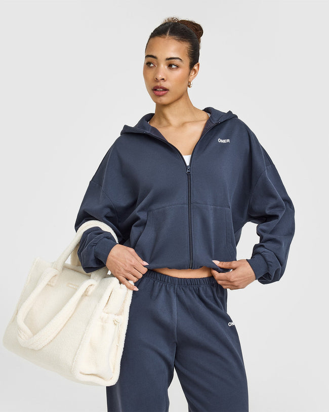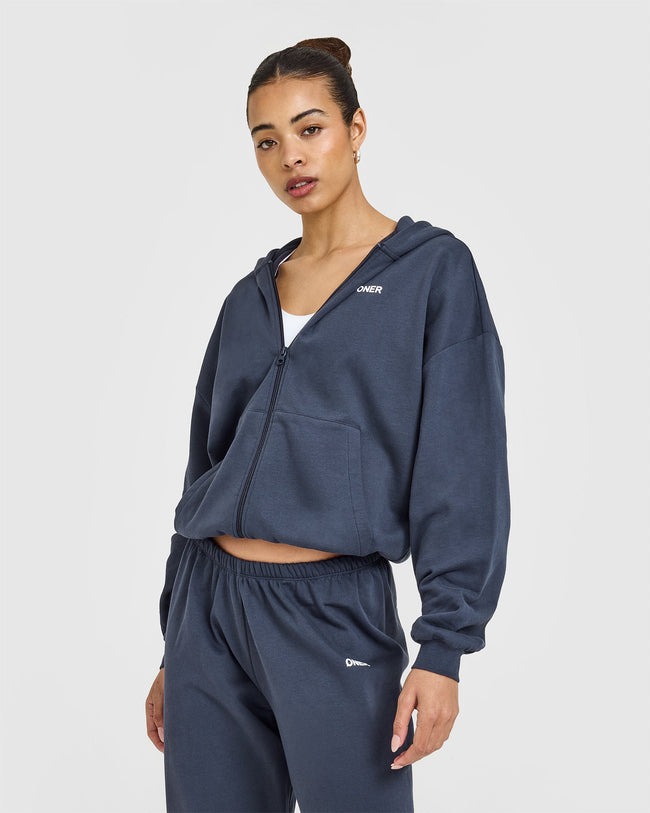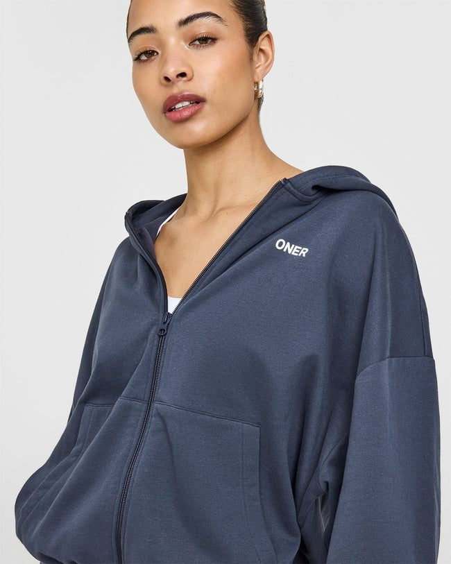 Lightweight Zip Through Hoodie With Oner Logo True Blue