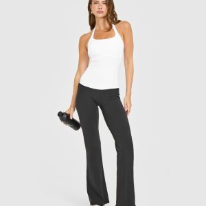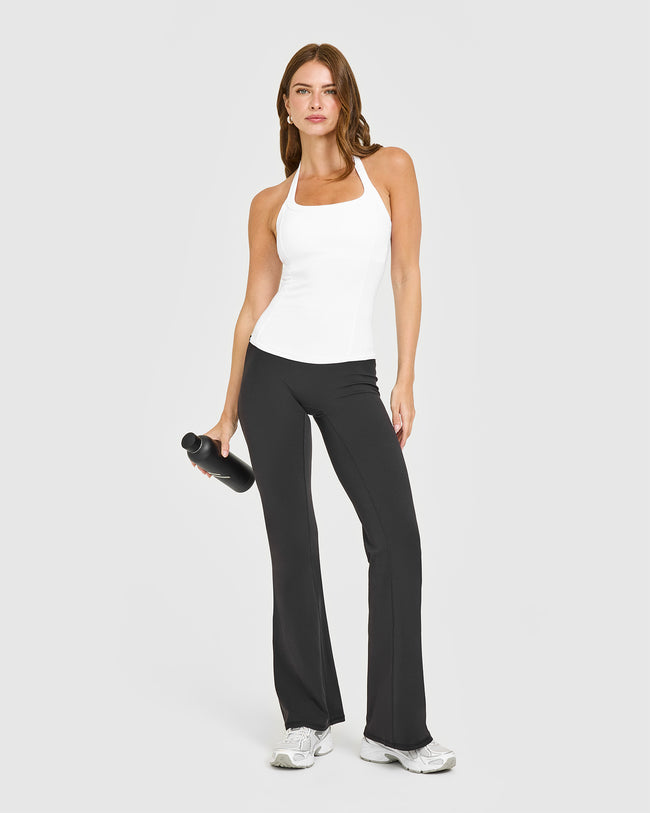 Mellow™ Rib Halter Neck Vest with Built in Bra Shelf White
