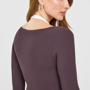 Mellow™ Rib V Neck Mid Long Sleeve Top Umber Brown