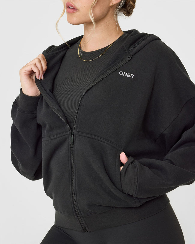 Mid Weight Zip Through Hoodie Soft Black