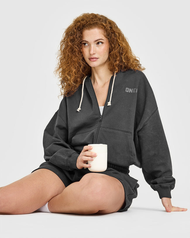 Raw Lounge Oversized Zip Hoodie Washed Black