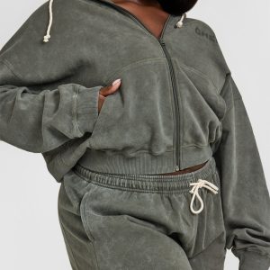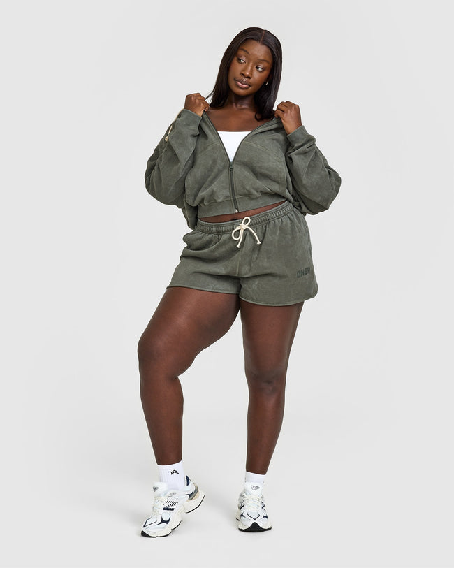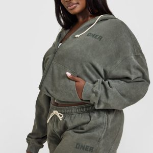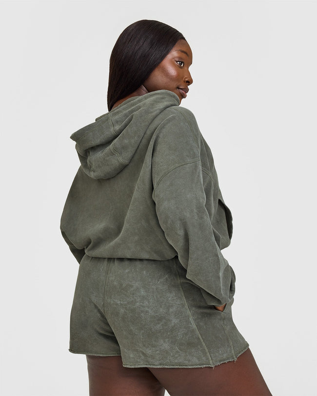 Raw Lounge Oversized Zip Hoodie Washed Dark Khaki