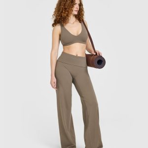 SoftMotion™ Fold Over Straight Leg Bottoms Moss Brown
